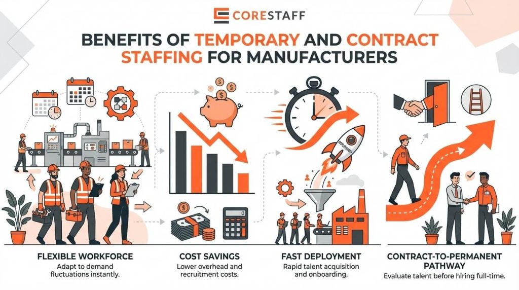 Learn the advantages of temporary and contract staffing for Singapore manufacturing. Flexibility, cost control, faster deployment, and reduced hiring risk.